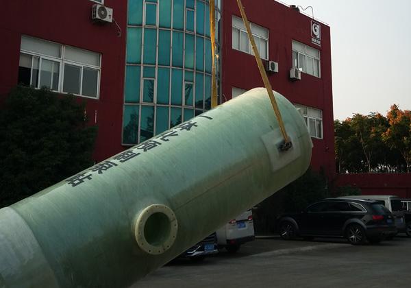 在一體化污水提升泵站的設計方面,考慮到安全性、便捷性、環保性等使用需求,采用纖維纏繞玻璃鋼制成防滑頂蓋,玻璃鋼制成泵站上蓋,吊籃格柵、通風排氣管和扶手均選用不銹鋼材質,并加裝了防盜的安全鎖,除使用者之外無法實現輕松啟閉。